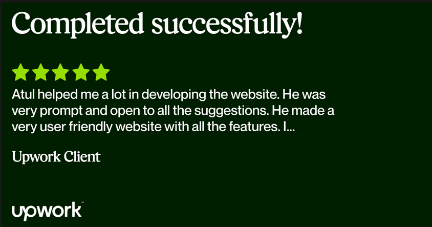 Top Rated developer on Upwork from past 4 years with 100% satisfaction record.